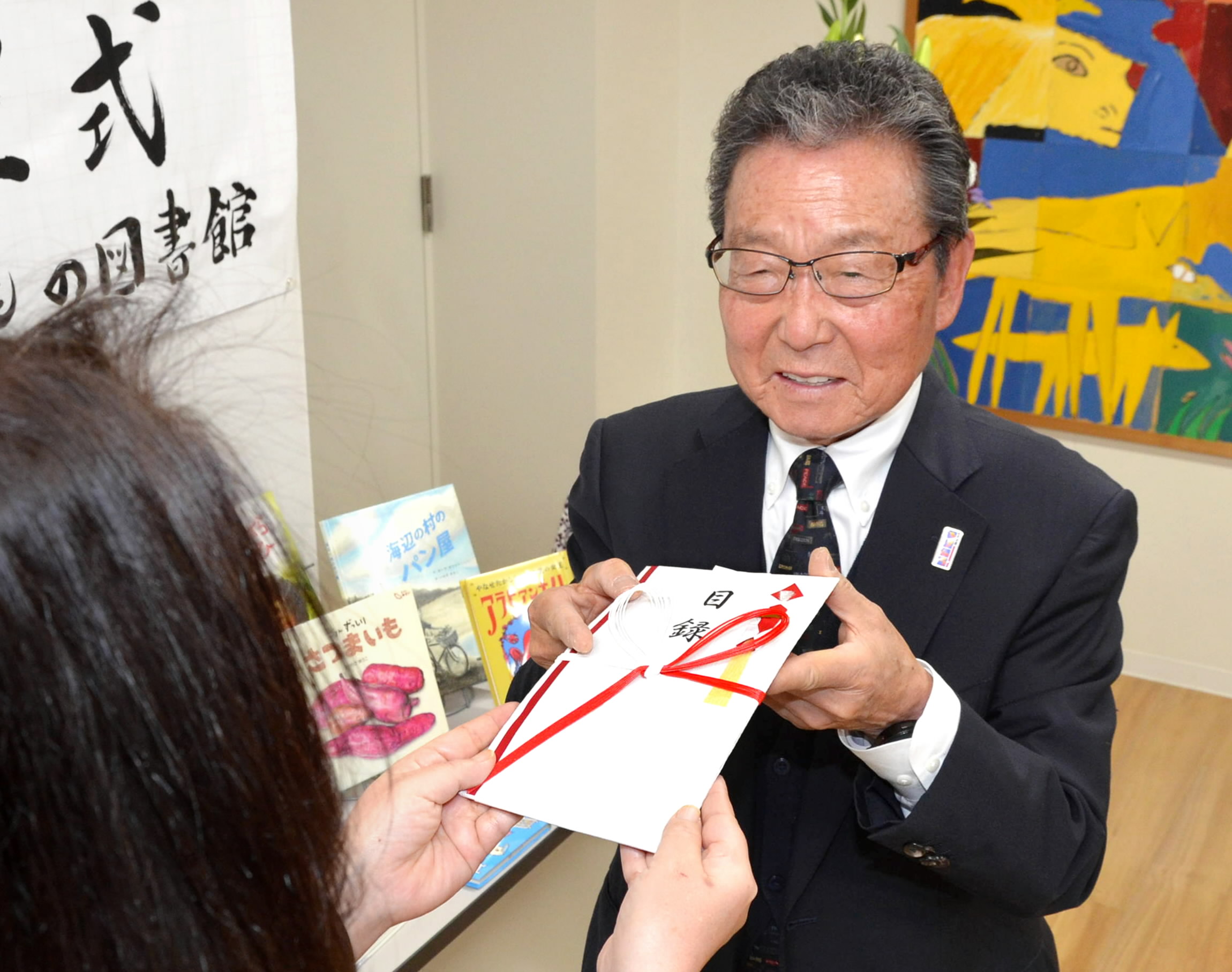 北村様より「ニュースを観て、高知こどもの図書館のことを知ってくださる方が増えるといいね。」と優しいお言葉をいただきました。これまでの寄付で購入した絵本など約250冊をご紹介し、贈呈式に出席した当館理事・スタッフ・ボランティアと共に、穏やかな雰囲気の中で感謝をお伝えした贈呈式でした。